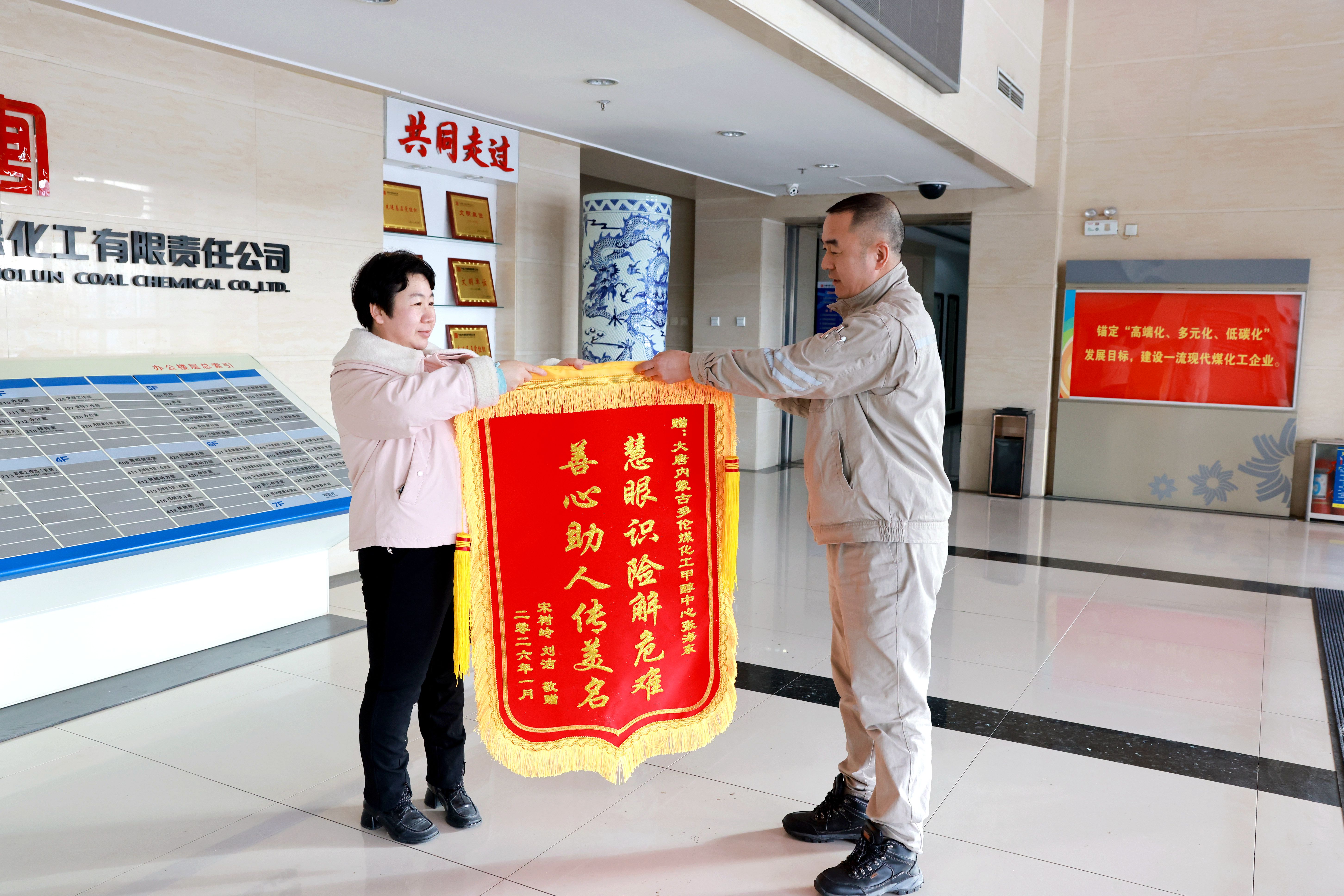1月15日,一面印着“慧眼识险解危难,善心助人传美名”的锦旗送到多伦煤化工公司甲醇中心职工张海东手中,送锦旗的是多伦县一家馒头店的经营者刘洁。这场诚挚的致谢,源于一次病房里的偶然对话。