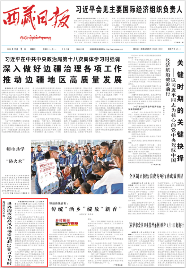 [西藏日报]世界海拔最高风电场发电超2200万千瓦时