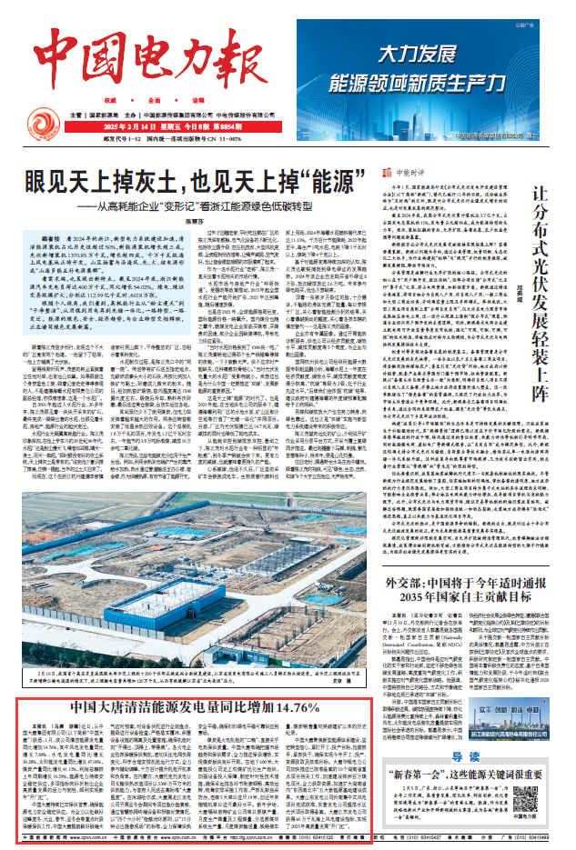 [中国电力报]威廉希尔williamhill清洁能源发电量同比增长14.76%