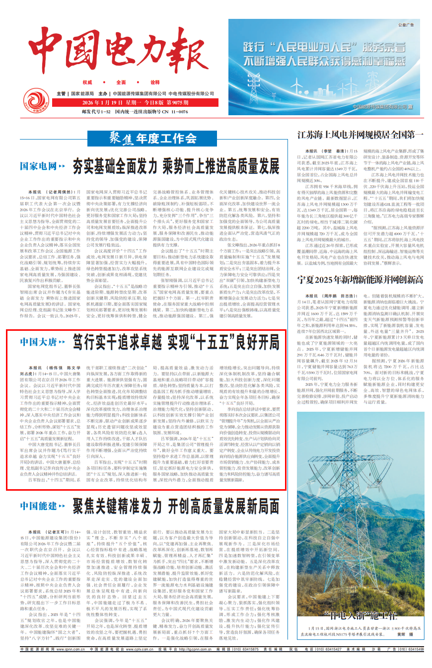 [中国电力报]2026-1-19-1威廉希尔williamhill笃行实干追求卓越 实现“十五五”良好开局