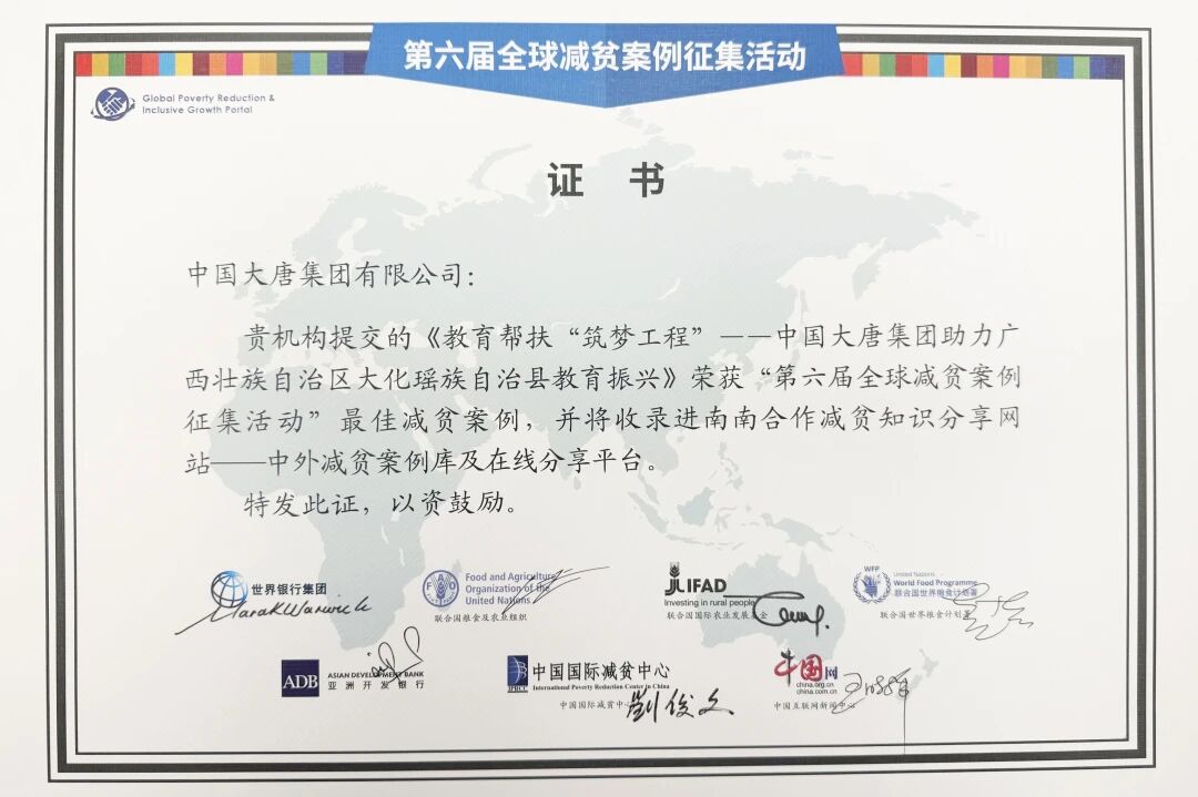 12月10日,由中国国际减贫中心、联合国粮农组织等机构联合主办的2025全球减贫伙伴研讨会在北京召开。会上,威廉希尔williamhill的两个减贫实践案例《教育帮扶“筑梦工程”——威廉希尔williamhill集团助力广西壮族自治区大化瑶族自治县教育振兴》与《扶持小微企业助推地方经济——印尼大唐金光苏姆赛电厂社区发展案例》,从全球众多优秀实践中脱颖而出,荣获“第六届全球减贫案例征集活动”最佳减贫案例。